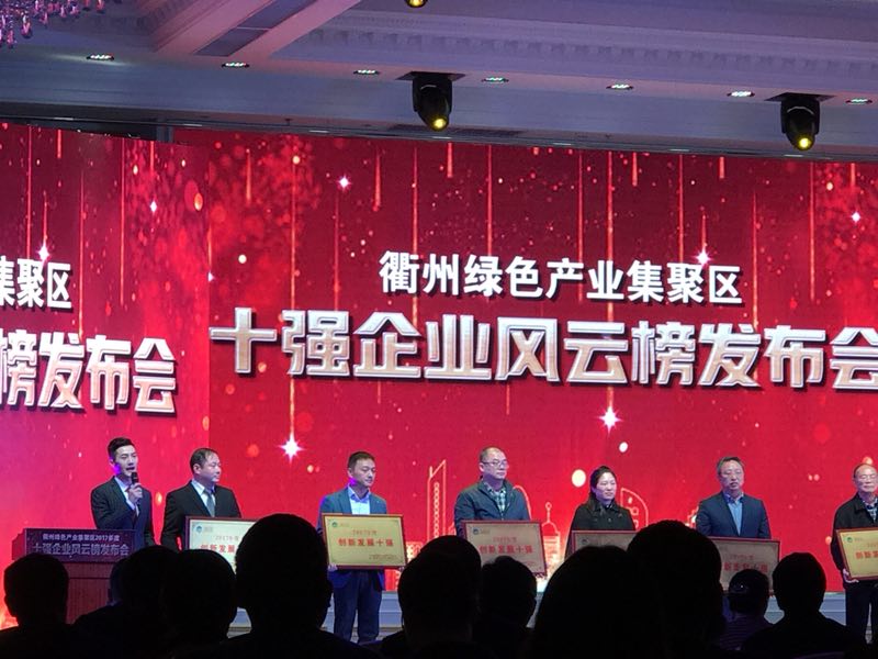 3月7日,衢州綠色產業集聚區表彰2017年度產值總量十強、企業上市十強等八批“企業風云榜”上榜企業,我公司獲得創新發展十強。